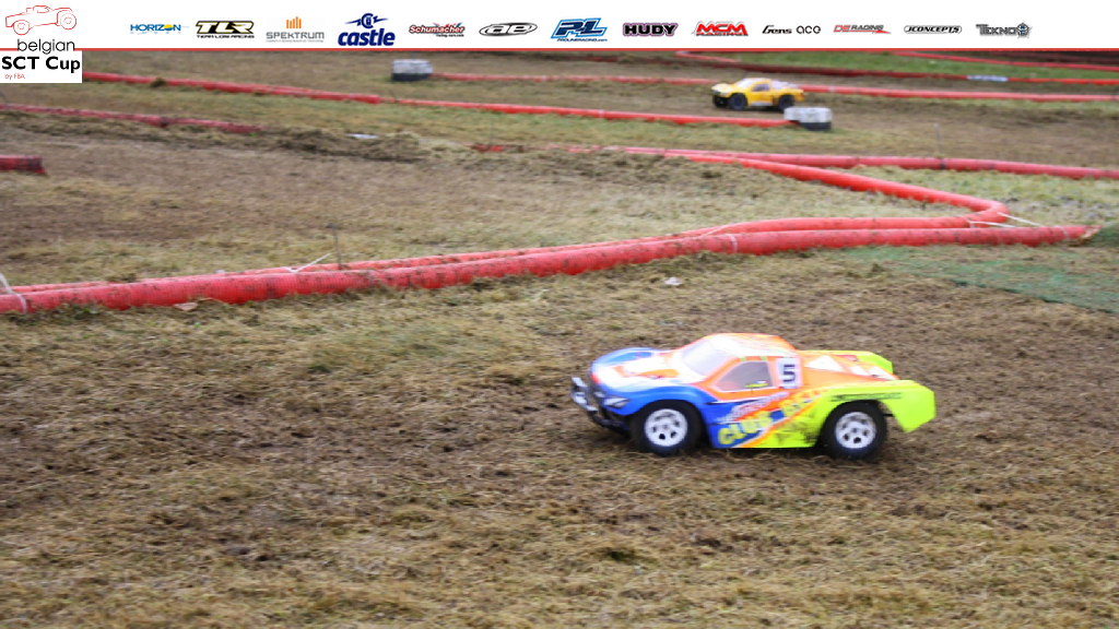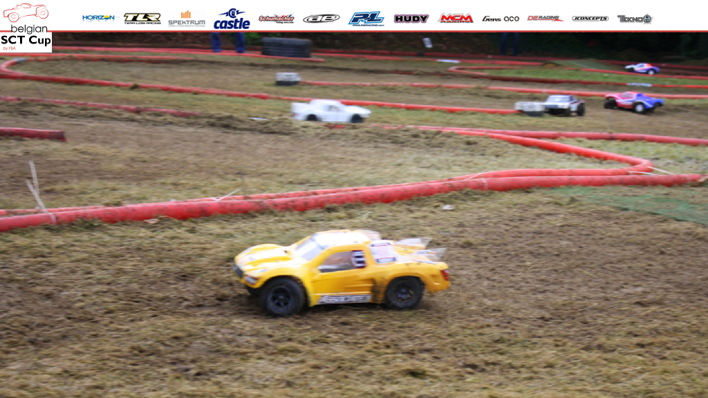First round of Pro2 qualifications sees Géry Ledocq (Kyosho SC6) and Nicolas Evens (TLR 22SCT) have a close run, separated by one tenth of a second at the end of the 6 minutes race. Stéphane Vanyper (Associated SC5M) follows 10 seconds further. In second round Géry finds lots of pace and takes a clear win ahead of Nicolas and fast newcomer Didier Delférière (Kyosho SC6). In last round, scenario for top 2 is the same and youngster Guillaume Laffut (TeamC TM2SC) takes a brilliant third place, his best ever so far!